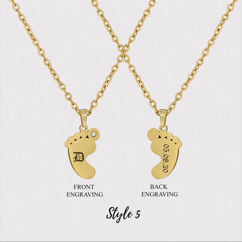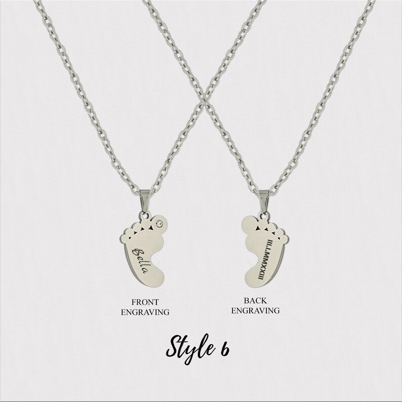 We’re pleased to present our special and touching Baby Foot Name Necklace, the ideal present for any new or expectant mother! The petite and delicate design of this endearing necklace includes a nameplate and a tiny charm of a baby foot.