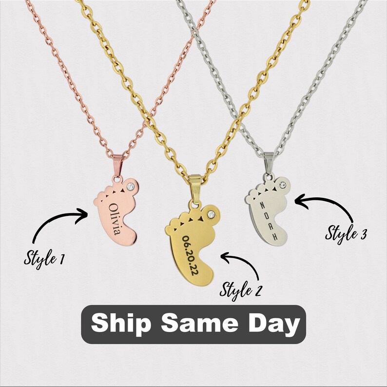 “Capture the Sweetness of Your Little One with a Personalized Baby Foot Name Necklace – Perfect Gift for New Moms and Mother’s Day!”