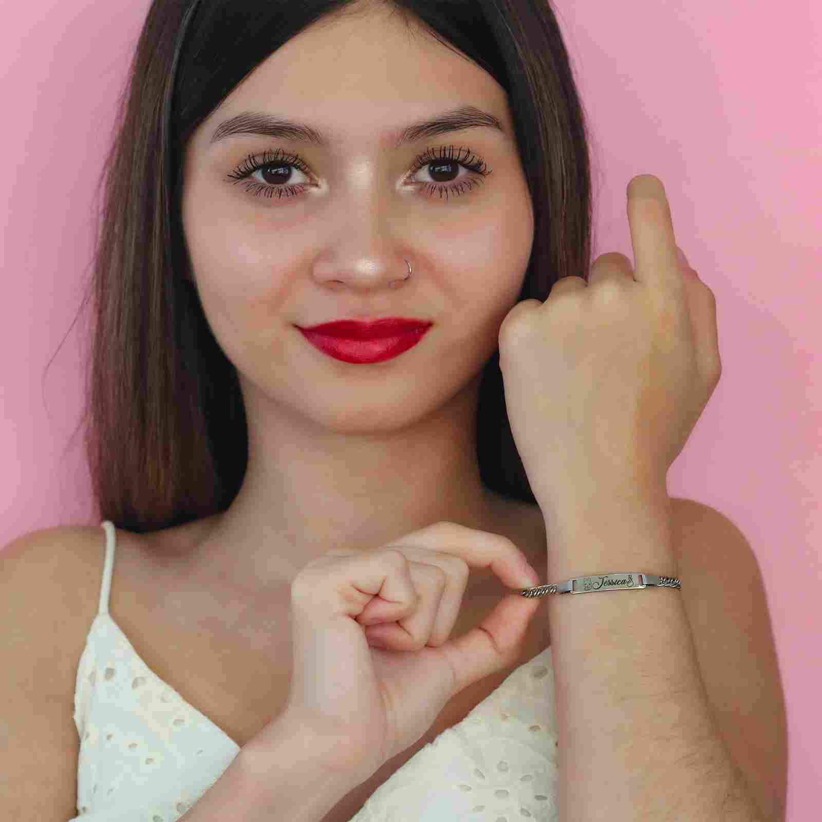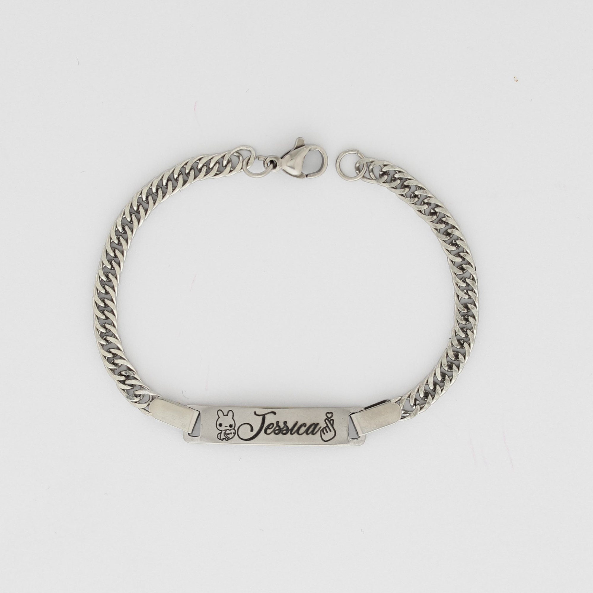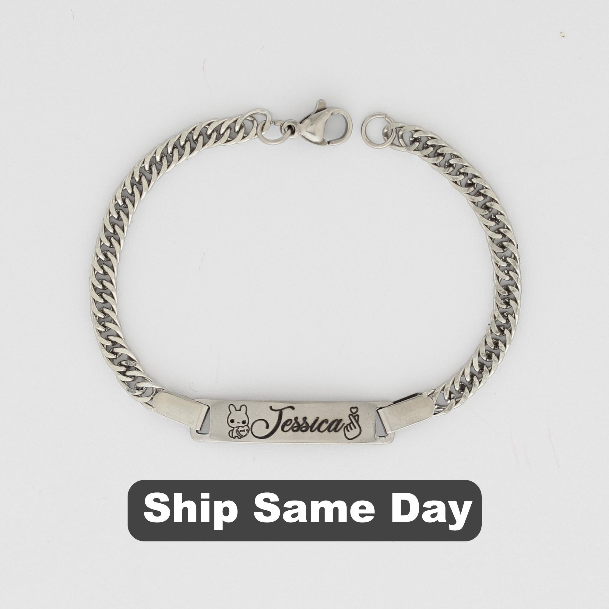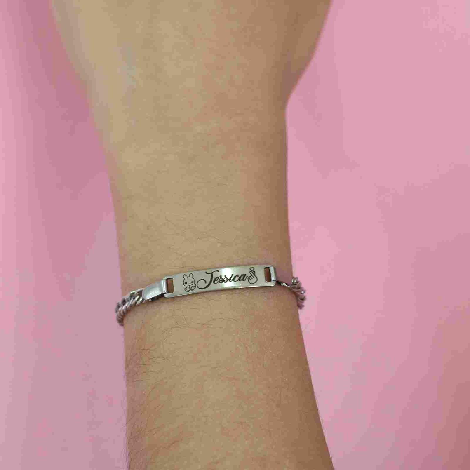 Custom Engravable Name Bracelet, Personalized Stainless Steel Message Bracelet, Best Gift for Her, dainty cuff bracelet, bracelet for mom This Custom Engravable Name Bracelet offers a personalized touch, crafted from durable stainless steel. It serves as a heartfelt gift, perfect for her, with its delicate cuff design adding a touch of elegance. Whether celebrating a special occasion or simply showing appreciation, this bracelet serves as a cherished accessory, ideal for moms and loved ones alike. Specifications: Material: Stainless Steel Plating Finish: Silver You can choose font style as per your choice. ***If font style is not mentioned/selected we will consider the default font as Font 1 ***If you choose a handwritten font, then after placing an order send us an image of handwritten fonts on Etsy “Message”. PROCESSING TIME • 0-1 Business Day SHIPPING DETAILS: •Ships same day! If ordered before 12 PM PST Mon-Fri •Ships the next day! If ordered after 12 PM PST Mon-Fri LOOK AT OUR BESTSELLER CUSTOM AUDIO SCAN GIFTS Audio Player Scan Keychain https://www.etsy.com/listing/1431106586/personalized-song-player-keychains? Audio or Video Scan Bar Keychain https://www.etsy.com/listing/1422330196/custom-audio-scan-qr-code-personalized? FOR MORE CHECK CHAINS ONLY https://www.etsy.com/shop/ChainsOnly? FOR NEW OFFERS / NEW LAUNCHES / SPECIAL SALES / GIVEAWAYS CONNECT WITH US ON SOCIAL MEDIA INSTAGRAM https://www.instagram.com/thechainsonly/ FACEBOOK https://www.facebook.com/thechainsonly/ TIKTOK https://www.tiktok.com/@thechainsonly SUBSCRIBE TO OUR EMAIL AND GET 70% INSTANT DISCOUNT https://chainsonly.aweb.page/p/36e156a0-860f-4df7-842c-a004cae7ffc3