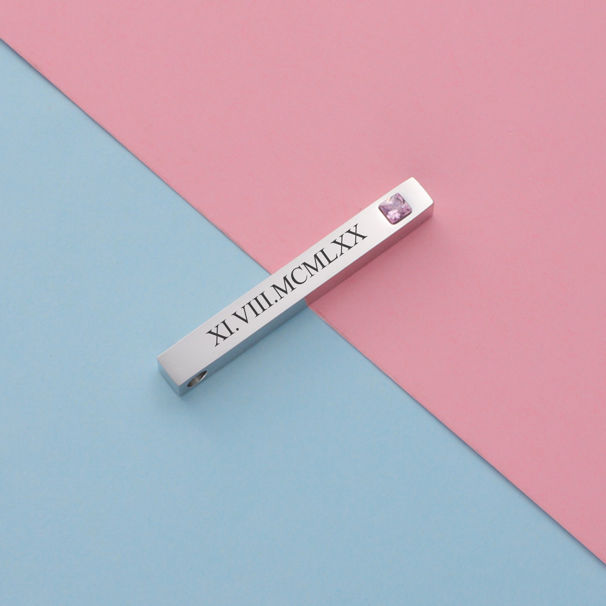 Engraved Birthstone Keychain,3D 4 Sides Bar Roman Numeral keyring ,Drive Safe Keychain,Custom Name Initial Keychain,boyfriend valentine gift