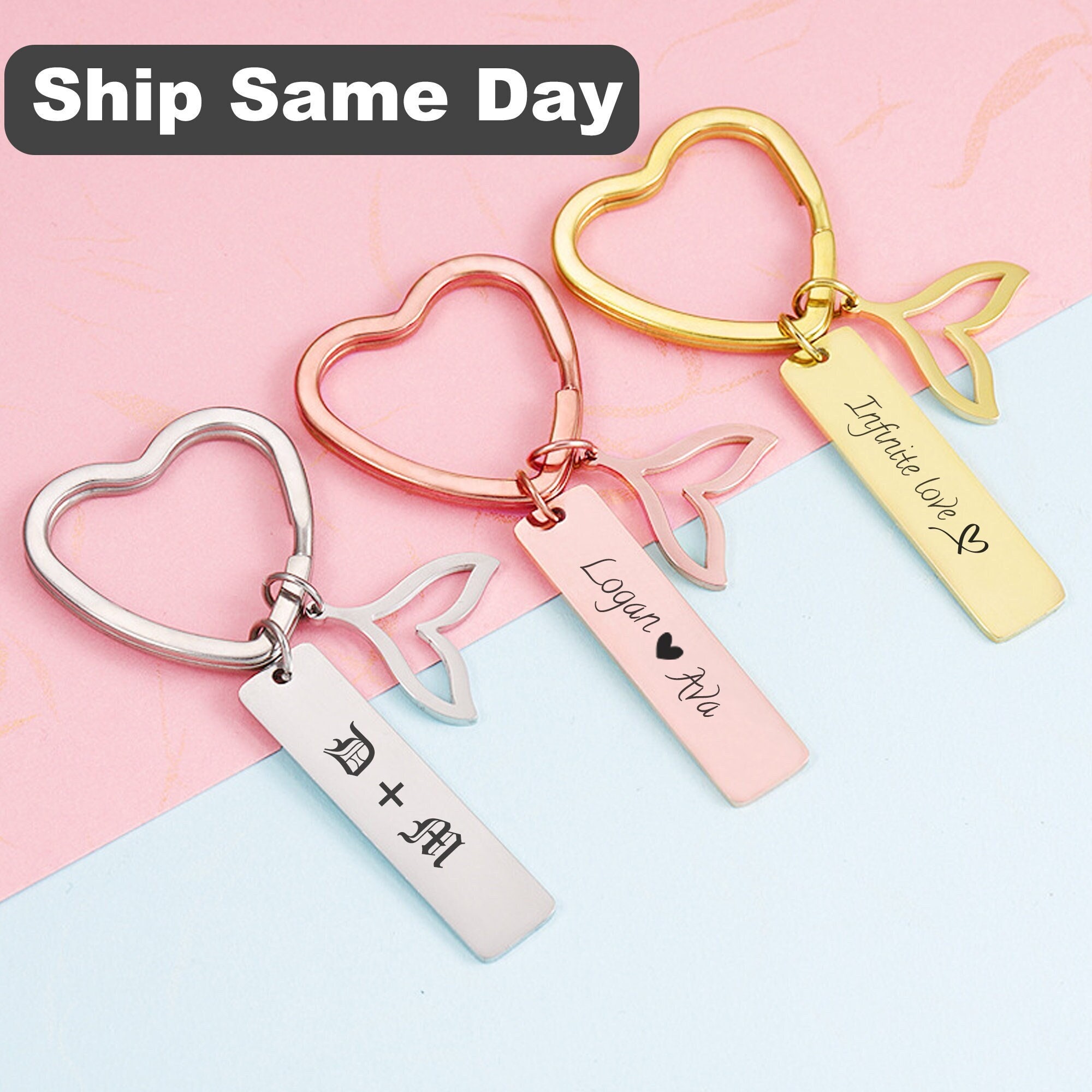Personalized couple Name keychain,Custom engraved heart keychain set,his and hers perfect gift,Heart Keyring,first communion gift Idea Celebrate love with our Custom Engraved Heart Keychain Set! 💖 Perfect his and hers Valentine’s Day gift or a unique first communion present. Personalize with your names and cherish the special moments. Crafted from durable stainless steel. Coordinates Heart Keyring adds a sentimental touch. 🌟 Specifications: Material: stainless steel Plating Finish: Gold/Rose Gold/Silver This keychain can be engraved in different ways on Both Side: 1. Names or initials of loved ones 2. Important dates (such as anniversaries or birthdays) 3. Inspirational quotes or phrases 4. Religious messages 5. Symbols or images that hold personal significance 6. Coordinates of a special location 7. Lyrics from a favorite song ***Specify in Personalized Box In Details which side you want to engrave (*If side not specify we will make it ourselves) You can choose font style as per your choice. ***If font style is not mention/selected we will consider default font as Font 1 ***If you choose handwritten font, than after placing and order send us image of handwritten fonts on Etsy “Message”. PROCESSING TIME • 0-1 Business Day SHIPPING DETAILS: •Ships same day! If ordered before 12 PM PST Mon-Fri •Ships the next day! If ordered after 12 PM PST Mon-Fri 👀FOR MORE CHECK CHAINS ONLY https://www.etsy.com/shop/ChainsOnly? INSTAGRAM https://www.instagram.com/thechainsonly/ FACEBOOK https://www.facebook.com/thechainsonly/ TIKTOK https://www.tiktok.com/@thechainsonly %……….%……….%………%………..% SUBSCRIBE TO OUR EMAIL AND GET 70% INSTANT DISCOUNT https://chainsonly.aweb.page/p/36e156a0-860f-4df7-842c-a004cae7ffc3