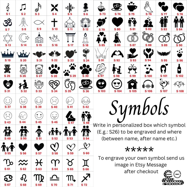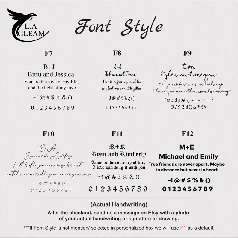 This necklace can be engraved in different styles, such as:
