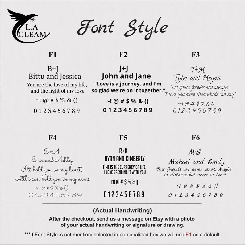 ***If you choose a handwritten font, than after placing and order send us image of handwritten fonts on Etsy “Message”.