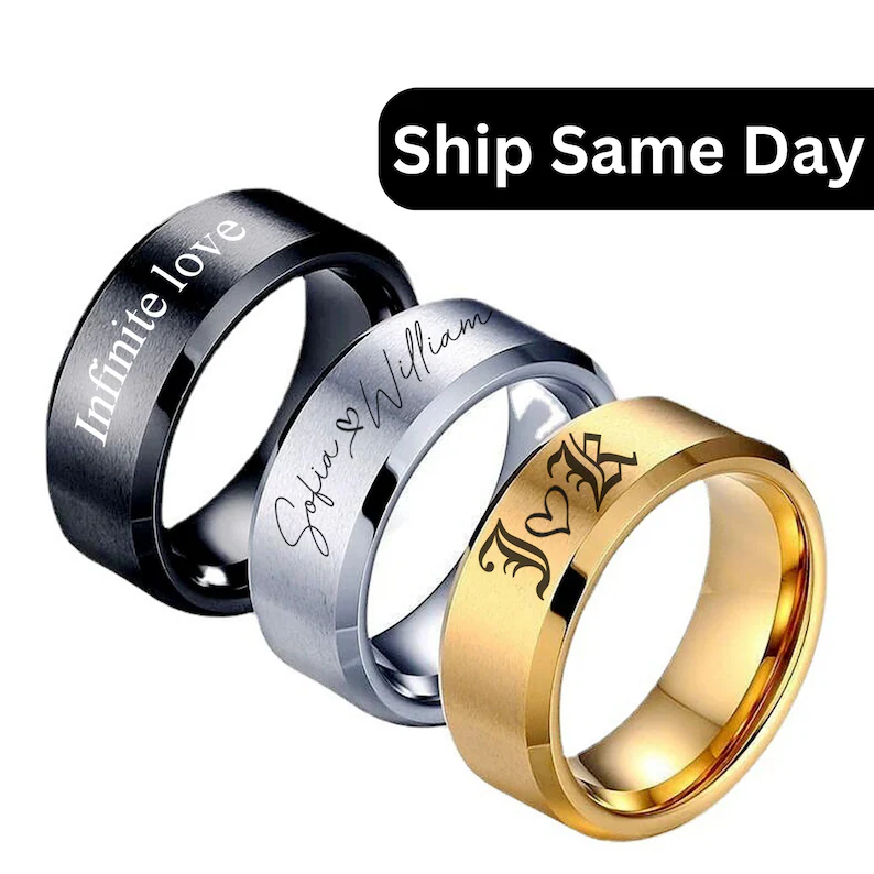 “Personalized Stacking Rings with Name Engravings – Perfect for Couples, Friends, and Moms – Customizable Initial Rings, Couple Matching Promise Rings, or Engagement Rings for Women – Bold and Unique Jewelry that Makes a Statement”